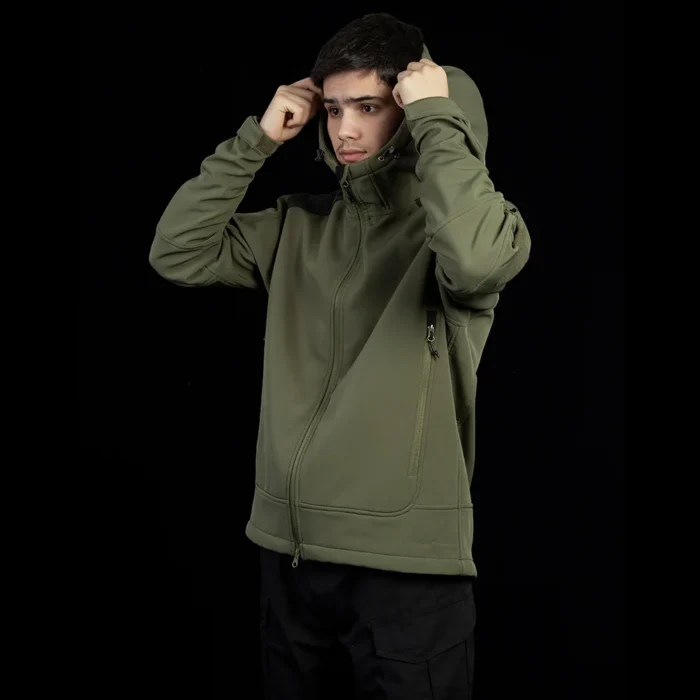 Hooded Tactical Design – Adjustable hood with reinforced shoulders for durability.